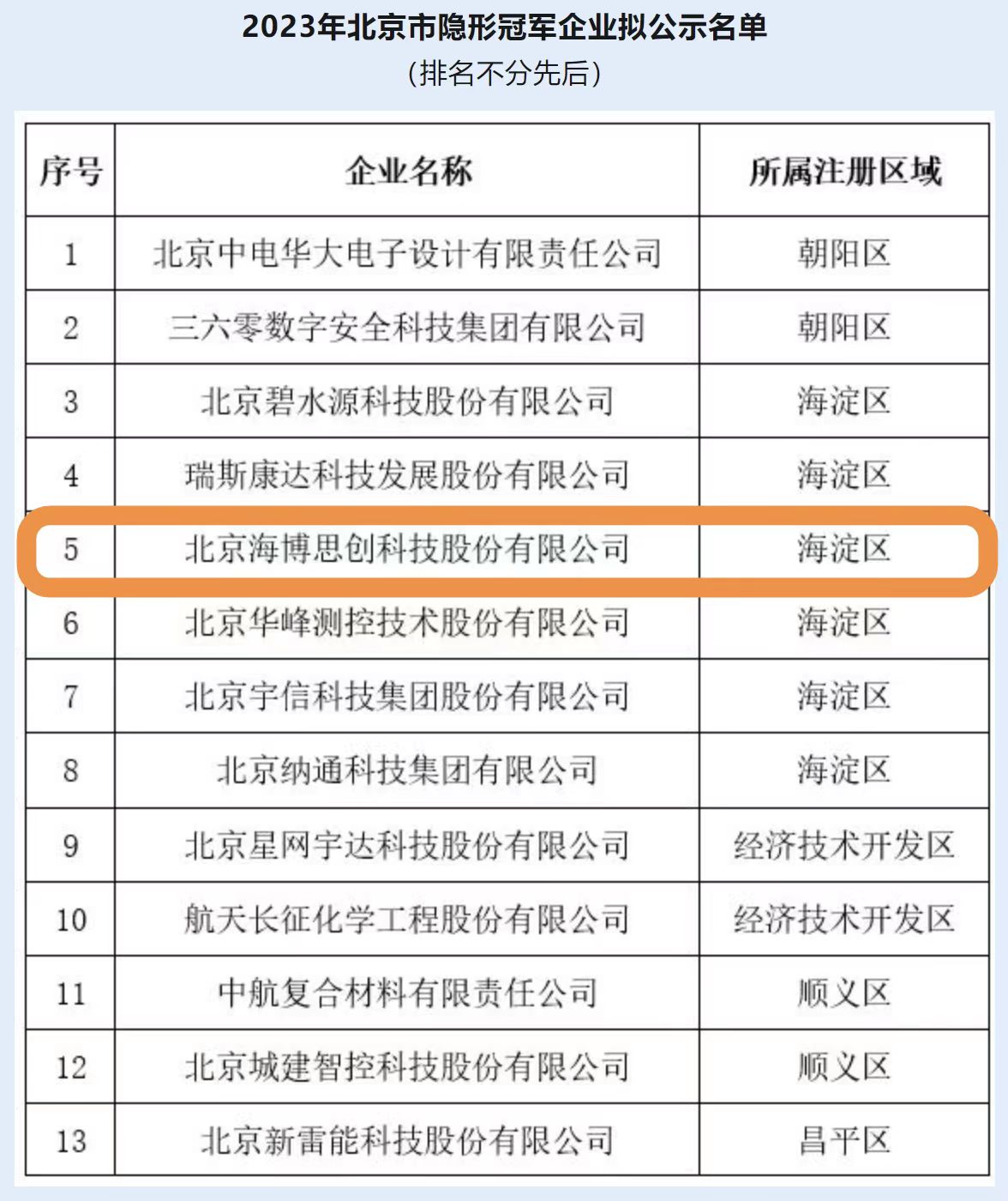 2023年北京市“隱形冠軍”企業(yè)名單